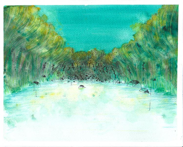 CHLOÉ SORIN ( Noyon, FRANCE, 1993). Graduated from the Master Motion Design and Animation Cinema at ISCID since last June, Chloé made her first steps in the animation world. After having worked as an internship on the short watercolor film "L'Heure de l'ours" by Agnes Patron and the feature film in oil painting "La Traversée" by Florence Miaihle, she directed her end film 'Horizon' study, also in watercolor. Inspired by all her experiences, she wishes to continue exploring the relationship between painting and animation. Her plastic practice brings her closer to the creation of sets, while her ideas and ambitions attract her to writing stories and the profession of director.
